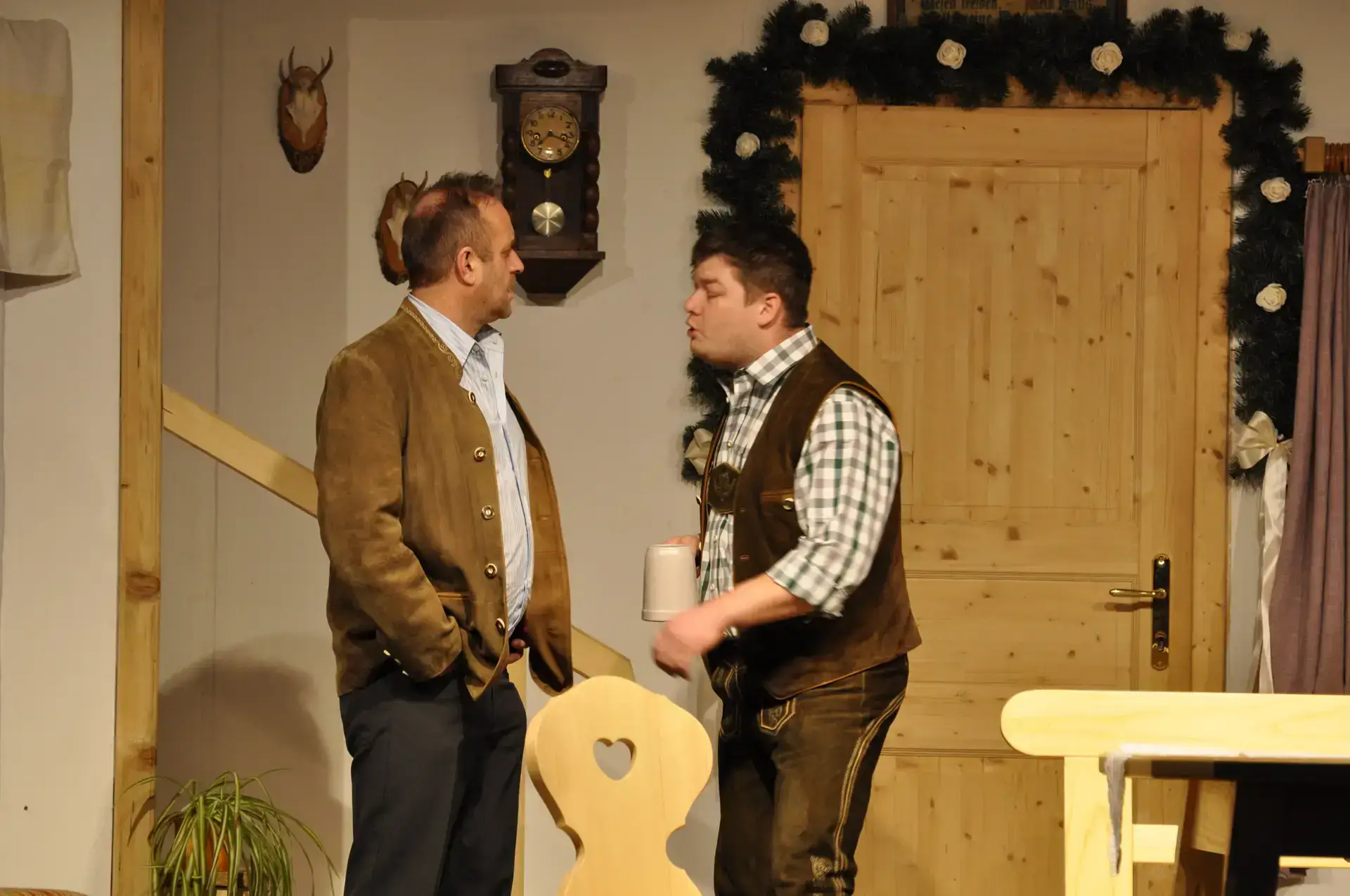 Thomas Stangassinger ist zwar der Bauer auf dem Hof, Herr im Haus ist jedoch seine Frau Stasi. Es kommt zu Komplikationen als sich die beiden Söhne Sepp und Toni in dasselbe Mädchen verlieben. Die Bäuerin, die mit der Vevi als Schwiegertochter einverstanden ist, stellt das Mädchen vor die Wahl: entweder den Sepp oder den Toni, damit wieder Ruhe im Haus ist. Vevi entscheidet sich für den Sepp. Der Bauer tobt und will die Hochzeit mit allen Mitteln verhindern. Vevi bringt als Tochter des alten Sägefeiler Korbi keine Mitgift ins Haus, doch das ist nicht der wahre Grund für den Widerstand des Bauern. In den ersten Jahren seiner Ehe war der Stangassinger keineswegs so brav wie heute und deshalb ist die Vevi in Wirklichkeit nicht die Tochter von Korbi, sondern seine eigene. Doch nicht nur der Bauer hat ein Geheimnis zu hüten, das ihm schwer auf der Seele lastet. Als der Vogelhuber zu Besuch kommt, um seine Tochter Afra mit einem der Stangassingerbuben zu verheiraten, erklärt die Bäuerin, das sei unmöglich und lässt sich nicht von dieser Meinung abbringen…